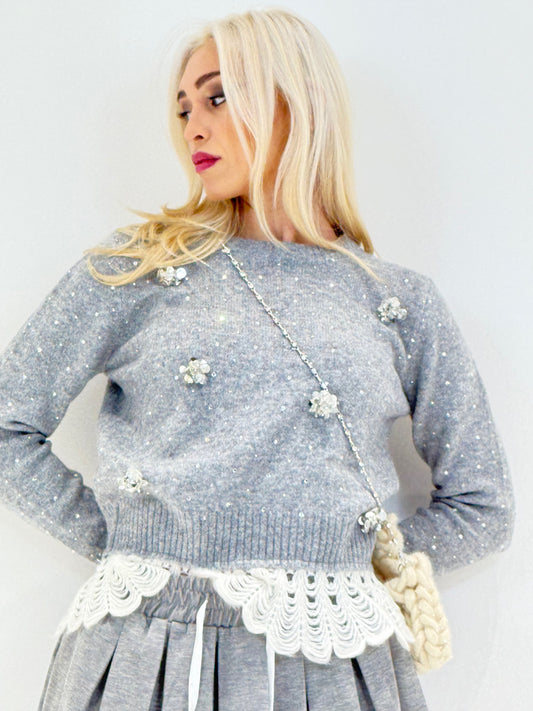 EsauritoFIORI DI STRAS PULL GRIGIO