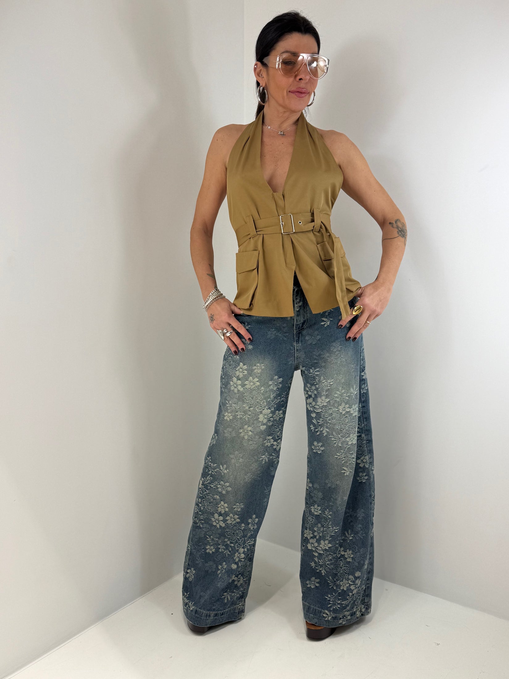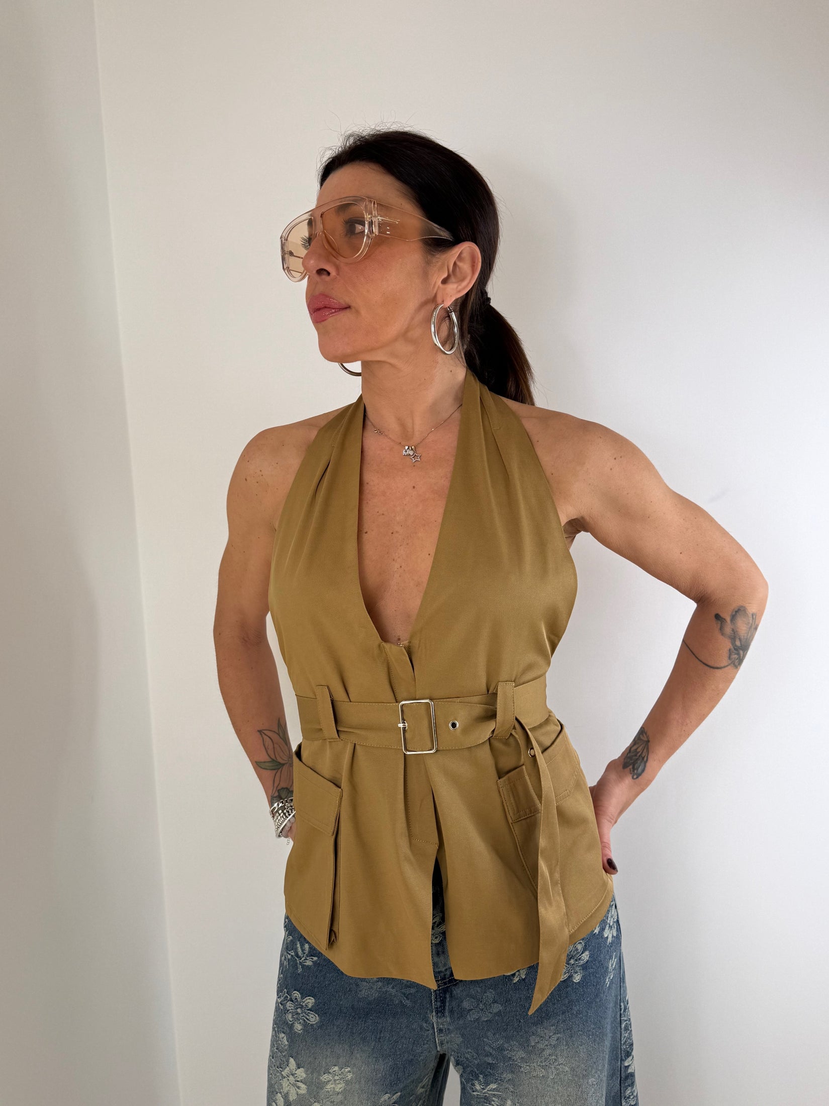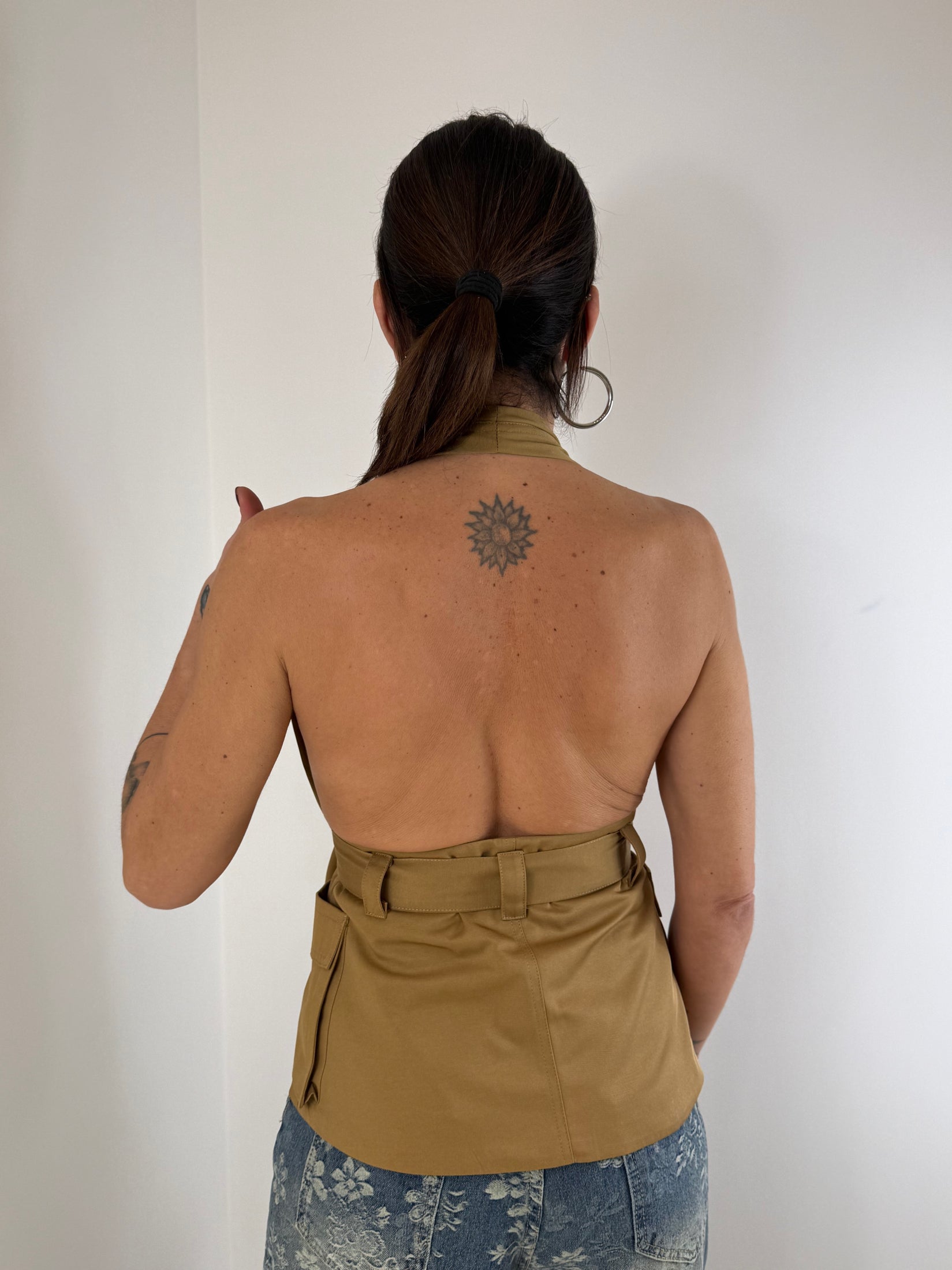 TOP SCOLLATO MODELLO COSTRUITO CON ZIP E TASCHE E SCHIENA NUDA
